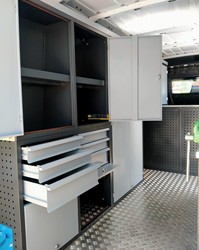 OEM Fahrzeug innenausstattung Kunden spezifische Metalls chränke und Regale Werkzeug wagen für Fahrzeuge Van Regale Van Racking